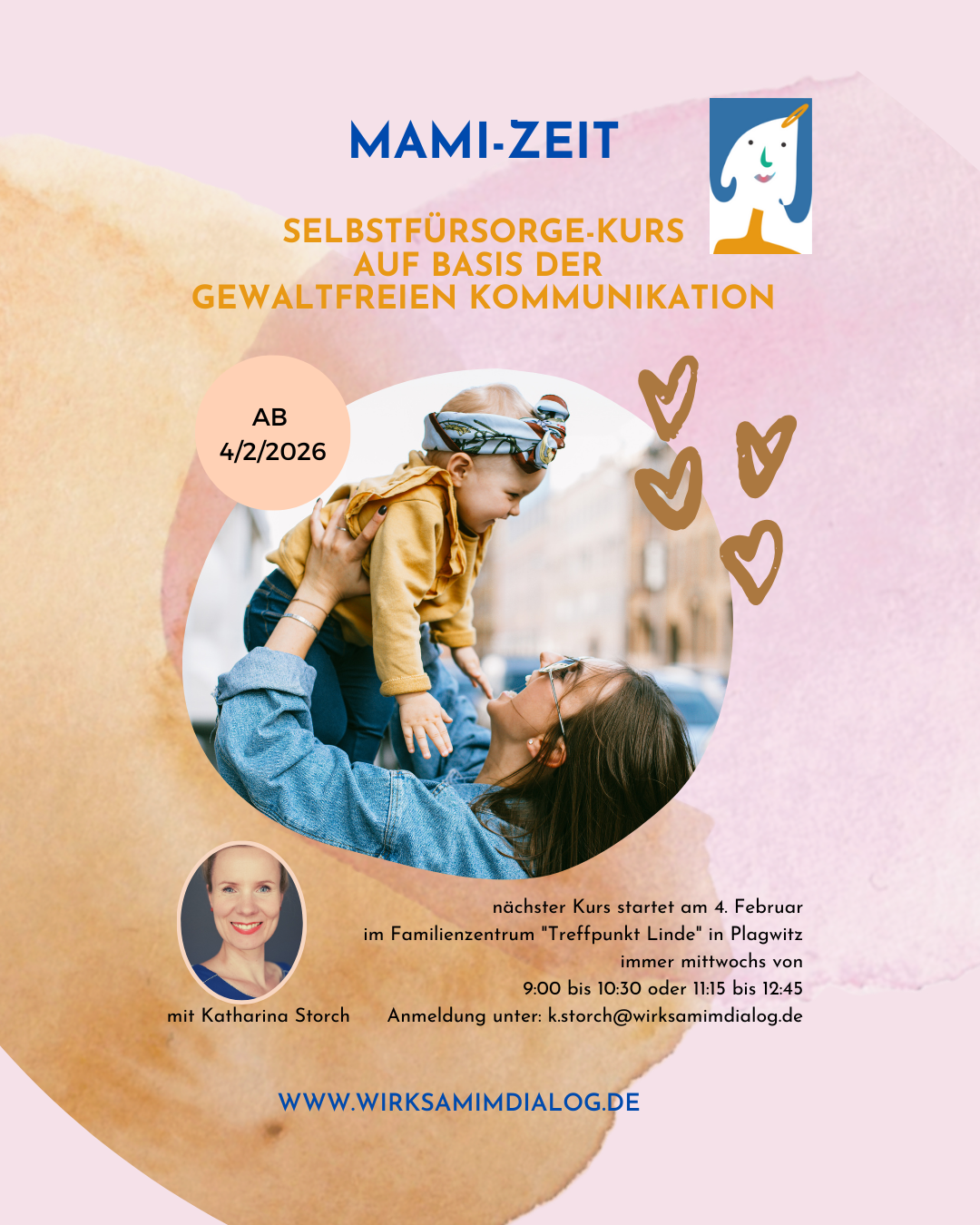 Du suchst Kontakt und Austausch zu anderen Müttern. Du wünschst Dir Zeit und Raum für Deine eigenen Bedürfnisse. Du möchtest in einer Herzensverbindung mit Deinem Kind leben. Die Mami-Zeit ist Deine Zeit für Dich. Dieser Kurs richtet sich an alle Mamas, die ihren Lebensalltag mit Kind(ern) oder Baby einfühlsam und bedürfnisorientiert leben wollen. Über 8…